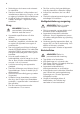 • Netledningen skal være under niveauet for netstikket. • Sæt først netstikket i stikkontakten ved installationens afslutning. Sørg for, at der er adgang til elstikket efter installationen. • Undgå at slukke for maskinen ved at trække i ledningen. Tag altid fat i selve netstikket. Brug ADVARSEL! Risiko for personskade, forbrændinger, elektrisk stød eller brand. • Apparatets specifikationer må ikke ændres. • Anbring ikke el-apparater (f.eks.