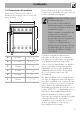 Instalación 1.3 Desembalaje, desplazamiento y ubicación de la cocina ATENCIÓN: Esta unidad ha sido diseñada como aparato de cocción. Por motivos de seguridad, no la use nunca como calentador de ambientes. • Para facilitar el desplazamiento de la misma, se recomienda extraer las rejillas, la plancha, los difusores y las tapas de los quemadores, el panel de protección frontal y las rejillas del horno. De esta manera se reducirá el peso para las operaciones de desplazamiento.