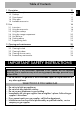 Table of Contents 1.1 1.2 1.3 1.4 1.5 10 General Description Cooktop Control panel Other parts Available accessories 2 Use 2.1 2.2 2.3 2.4 2.5 2.6 2.7 10 11 11 12 12 14 Instructions Using the accessories Using the cooktop Using the storage compartment Uso del forno Cooking advice Programming clock 3 Cleaning and maintenance 3.1 3.2 3.3 3.4 3.
