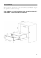 Encasement Set the appliance into the niche in the cabinet. Make certain that the body of the appliance is positioned correctly. Open the drawer and fasten the appliance to the sides of the cabinet with 2 screws and the 2 spacers delivered with the appliance.