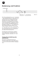 DE Bedienung und Funktion Kontroll-Leuchte 7 0 1 6 2 5 Beleuchtung Der Thermostatknopf kann von 1 (warm) bis 7 (kalt) eingestellt werden. Nach kurzer Zeit werden Sie die für Sie passende Einstellung gefunden haben. Beginnen Sie mit Stellung 4, und verändern Sie die Einstellung, bis die passende Temperatur erreicht ist. Die normale Lagerungstemperatur für Kühlwaren beträgt +5 ºC. Zur Kontrolle der Schrankinnentemperatur stellen Sie ein Glas mit Wasser und einem Thermometer ca.