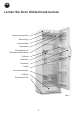 DE Vielen Dank für Ihre Wahl eines Kühlschranks von Smeg. Bitte beachten! Diese Bedienungsanleitung gilt für alle Kühlschränke der SW-Serie. Darum entsprechen Abbildungen und Ausstattung nicht in jedem Fall genau Ihrem Gerät. Lieferung auf eventuelle Beschädigungen. Transportschäden sind dem Händler zu melden, bevor das Gerät in Gebrauch genommen wird. Verpackung entfernen. Das Schrankinnere mit lauwarmem Wasser und etwas mildem Spülmittel reinigen.