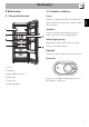 2 Beskrivelse 2.2 Definition af delene 2.1 Generel beskrivelse Fryser Bruges til opbevaring af frosne fødevarer, til frysning af ferske fødevarer og til produktion af isterninger. Ventilator Bruges til temperaturfordeling og til et reducere kondens på støttefladerne. Indvendig belysning Apparatets indvendige belysning går i funktion når lågen åbnes. Køleskab Bruges til opbevaring af ferske fødevarer.