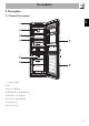 Description 2.2 Description of parts Refrigerator compartment Control panel For storing fresh foods. For setting the temperature inside the refrigerator and freezer compartments. Quick freeze drawer Fan Freezer compartment Distributes the temperature and reduces condensation on the shelves and other surfaces. For storing frozen foods, freezing fresh foods and producing ice cubes. For quickly freezing fresh food. Interior lighting The interior of the appliance is lit when the door is opened. 2.