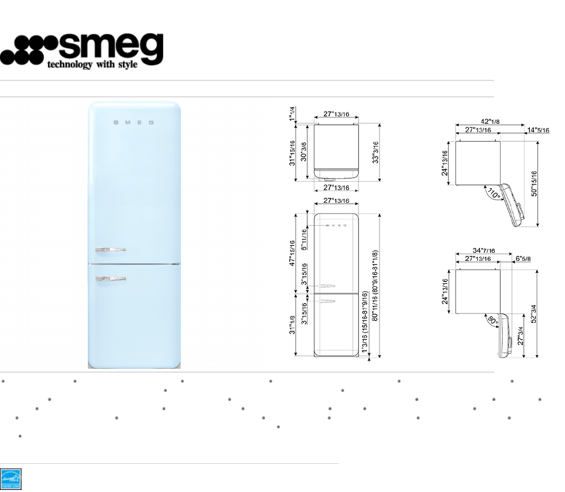 Dimensions (HxWxD): 80 11/16” x 27 13/16” x 30 3/8” (handle included) Dimensions with door open at 90° (HxWxD): 80 11/16” x 34 7/16” x 52