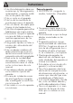 3. Instrucciones generales de seguridad 3.1 Riesgo de lesiones personales • Mantenga a los niños menores de ocho años a una distancia segura a menos que estén bajo supervisión constante y asegúrese de que no jueguen con el aparato. • Nunca intente extinguir fuegos o llamas con agua: apague el aparato y extinga las llamas con una manta ignífuga. • Las operaciones de mantenimiento y limpieza que están a cargo del usuario no deben ser realizadas por niños sin supervisión.