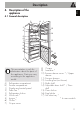 . Important safety instructions 4 2. Intended use of the appliance 5 3. General safety instructions 3.1 Risk of personal injury 3.2 Manufacturer liability 3.3 Disposal 3.4 Identification plate 3.5 This user manual 3.6 How to read the user manual 4. Description of the appliance 4.1 General description 5. Using the appliance 5.1 Information about New Generation Cooling Technology 5.2 Display and Control Panel 5.3 Operating yourRefrigerator/Freezer 5.4 Temperature Adjustment Warnings 5.5 Accessories 6.