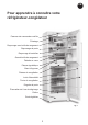 FR Pour apprendre à connaître votre réfrigérateur-congélateur Panneau de commande-contrôle Éclairage Rayonnage avec boîte de rangement Rayonnage de porte Rayonnage à bouteilles Grande boîte de rangement Tablette en verre Plaque signalétique Bacs à légumes Plateau de congélation Joint d’étanchéité Tiroirs de congélation Poignée de porte Évacuation de l’eau de dégivrage Plinthe Pieds réglables fig.