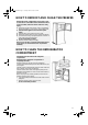 63633043GB.fm Page 14 Saturday, March 5, 2005 3:25 PM PRECAUTIONS AND GENERAL RECOMMENDATIONS • Use the refrigerator compartment only for storing fresh food and beverages and use the freezer compartment only for storing frozen food, freezing fresh food and making ice cubes. • After installation, make sure that the appliance is not standing on the power supply cable. • Do not store glass containers with liquids in the freezer since they may burst.