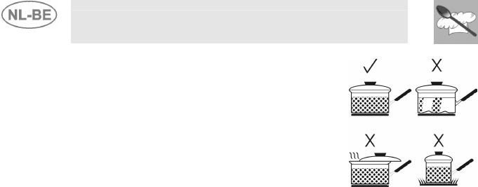 • Pannen te gebruiken met een vlakke, dikke bodem.