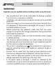 EN Installation instructions The hood is supplied with all the accessories required for installation. For the minimum distance between the lower surface of the hood and the type of hob, please refer to the image on page 9. The hood is fitted with a fume non-return valve, make sure that it is free to open and close. For easy installation, we recommended that you follow the procedure below: 1) The hood should be centred with respect to the hob; see the figure on page 9.