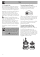 1 Extraction using a hood 2 Extraction without a hood A Single natural draught chimney B Single chimney with extractor fan C Directly outdoors with wall- or windowmounted extractor fan D Directly outdoors through wall 5.6 Adaptation to different types of gas If other types of gas are to be used, the nozzles must be replaced and the primary air must be adjusted. In order to replace the nozzles and adjust the burners, the hob top must be removed. Removing the hob top 1. Remove the grids from the hob.