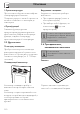 Использование 3.3 Использование принадлежностей Решетка для противня Решетки и противни Решетка для противня вставляется внутрь самого противня. Таким образом, можно собрать жир отдельно от готовящихся продуктов. Решетки и противни следует вставлять в боковые направляющие до упора. • Защитные механические стопоры, препятствующие случайному извлечению решетки, должны быть повернуты вниз и к задней стенке рабочей камеры духовки.