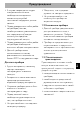 Чистка и уход • Распылите водный раствор моющего средства для посуды внутри духовки с помощью специального распылителя. Направьте струю в сторону боковых стенок, верха, дна и в сторону дефлектора (только для моделей, лишенных каталитических панелей). • Закройте дверцу. Рекомендуется выполнить примерно 20 распылений. Установка Паровая очистка 1. Поверните ручку функций и ручку температуры в положение . 2. Установите долготу приготовления 18 минут посредством ручки таймера. 3.