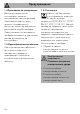 Предупреждения Для этого прибора • Будьте осторожны, поскольку пар при некоторых температурных значениях невидим. • Во время или после окончания процесса приготовления открывайте дверцу осторожно. • Столовые приборы должны быть стойкими к высоким температурам и пару. • Перед заменой лампы необходимо удостовериться в том, что прибор выключен. • Не прислоняйтесь и не садитесь на открытую дверцу. • Убедитесь, что в дверцах духовки не застряли предметы.