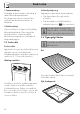 3.3 Anvendelse af tilbehøret Rist til bradepande Riste og bradepander Risten til bradepanden indsættes i bradepanden. På denne måde er det muligt at opsamle fedtet separat fra maden, som skal tilberedes. Riste og bradepander skal indsættes i sideskinnerne, indtil stoppunktet. • De mekaniske sikkerhedslåse, som forhindrer utilsigtet udtrækning af risten, skal vende nedad, og mod ovnrummets bageste del.