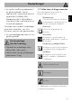 Anvendelse 3 Anvendelse 3.1 Bemærkninger Forhøjet temperatur inde i ovnrummet under brugen Fare for forbrændinger • Hold lågen lukket under tilberedningen. • Beskyt hænderne med grillhandsker under håndtering af madvarer inde i ovnrummet. • Rør ikke ved varmeelementerne inde i ovnrummet. • Hæld ikke vand direkte på de meget varme bradepander. • Lad ikke børn nærme sig apparatet, mens det er i funktion.