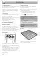 Gebruik 3 Gebruik 3.1 Waarschuwingen De temperatuur in de ovenruimte kan tijdens het gebruik hoog oplopen Gevaar op verbranding • Houd de deur dicht tijdens de bereiding. • Bescherm de handen met ovenwanten bij het hanteren van voedsel in de ovenruimte. • Let op dat u de verwarmingselementen in de ovenruimte niet aanraakt. • Giet geen water rechtstreeks op hete ovenschalen. • Houd kinderen buiten bereik van het werkende apparaat.