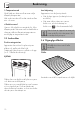 3.3 Användning av tillbehör Galler för ugnsplåt Galler och plåtar Gallret ska sättas i plåten. Man kan därmed samla upp fettet som frigörs från den mat som tillagas. Gallren och plåtarna ska föras in så långt det går på sidoskenorna. • De mekaniska säkerhetsspärrarna som hindrar att gallret glider ut av misstag ska vara vända nedåt och mot ugnens insida.