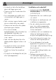 Rengöring och underhåll 4. Rengör det utvändiga glaset samt de glas som avlägsnats tidigare. Använd hushållspapper. Vid envisa fläckar kan man tvätta glasen med en fuktad svamp och ett neutralt rengöringsmedel. 5. Sätt tillbaka glasen i omvänd ordning i förhållande till demonteringen. 6. Montera det invändiga glaset igen. Var noga att centrera och genom att trycka lätt fästa de 4 stiften på rätt plats på luckan.