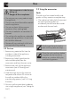 Cleaning and maintenance 4. Open the oven door. 5. Rest the container on the open door. 8. When the appliance has finished taking in water, shake the tube to remove any residual water. Note: the container with the solution must have a gross weigh lower than 5 kg. 6. Extract the tube from its seat and immerse its end in the container until it reaches all the way to the bottom. 9. Return the tube to its original position, remove the container of solution and close the door.
