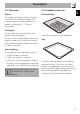 2.3 Other parts 2.4 Available accessories Shelves Perforated tray EN Description The appliance features shelves to position trays and racks at different heights. The insertion heights are indicated from the bottom upwards (see 2.1 General Description). Cooling fan The fan cools the oven and comes into operation during cooking. The fan causes a steady outflow of air from above the door which may continue for a brief period of time even after the appliance has been turned off.