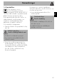 Rengøring og vedligeholdelse Afmontering af tætning: • Fjern krogene i de 4 hjørner, og træk tætningen udad. Montering af tætning: • Sæt krogene i tætningens 4 hjørner. Gode råd til vedligeholdelse af tætningen Tætningen skal være blød og elastisk. • For at holde tætningslisten ren bruges en svamp, som ikke ridser, og der vaskes med lunkent vand. Hvad bør man gøre hvis... Displayet er helt slukket: • Kontroller strømforsyningen.