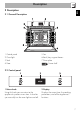 Description EN IT 2 Description 2.1 General Description 1 Control panel 2 Oven light 3 Seal 4 Door 5 Fan 6 Rack/tray support frames 7 Pizza plate Frame shelf 2.2 Control panel 1 Return knob 2 Display Using this knob you can return to the appliance's previous menu item. It also lets you manually turn the oven light on and off. Displays the current time, the cooking parameters, and all the appliance's functions.