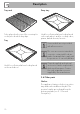 Description EN 2.2 Control panel 1 Display 2.3 Accessories The touchscreen display allows you to interact with the device. Press the icons to access the various available functions. The display will show all operational parameters, such as: selected function, preset cooking programs or time/temperature settings. Rack In general, press the symbol to return to the previous menu or end a function; press the symbol to confirm the selected options.