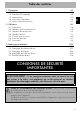 Table des matières 1.1 1.2 1.3 1.4 1.5 Description générale Panneau de commande Autres parties Accessoires disponibles Autres récipients de cuisson 2 Utilisation 2.1 2.2 2.3 2.4 2.5 2.6 2.7 64 64 65 66 67 68 Instructions Utilisation pour la première fois Utilisation des accessoires Utilisation du four Conseils pour la cuisson Fonctions spéciales Sous-menu 3 Nettoyage et entretien 3.1 3.2 3.3 3.4 3.