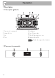 Description 1 Description 1.1 Description générale 1 Panneau de commande 2 Lampe du four 3 Joint 4 Porte 5 Ventilateur 6 Bac d’évaporation 7 Tube d’alimentation en eau 8 Support des grilles Cadre de support des étagères 1.