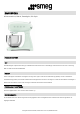 Küchenmaschine, 800 W, Pastellgrün, 50's Style