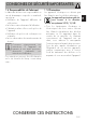 AVERTISSEMENT Pour réduire les risques d’incendie, de chocs électriques, de blessures personnelles ou de dommages en utilisant l’appareil, quelques précautions de bases doivent être suivies, incluant : 1 Sécurité 1.1 Avertissements fondamentaux pour la sécurité. Suivre toutes les instructions de sécurité afin de pouvoir utiliser l'appareil en toute sécurité : • Ne pas toucher pas la fiche avec les mains mouillées.