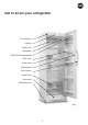 GB Get to know your refrigerator Control panel Lighting Bottle rack Nameplate Shelf with storage boxes Door shelf Glass shelf Sealing strip Door handle Crisper bins Kick plate Adjustable feet fig.