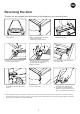 GB Reversing the door The door can be changed from right-hinged to left-hinged and vice versa as follows: 1. Lay the appliance on its back with the door uppermost. 2. Remove the upper hinge. 3. Move the plastic plugs to where the upper hinge was fitted. 4. Lift off the door and lay it aside. 5. Remove the kick plate by pulling it outwards and upwards. 6. Loosen lock nut with the fork wrench enclosed and move the pin. 7. Remove the lower hinge.