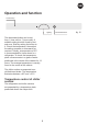 GB Operation and function Control lamp 7 0 1 6 2 5 Lighting The thermostat button can be set from 1 (less cold) to 7 (more cold). A suitable setting must be found by trial and error. Start by setting the button to 4. Check the temperature, then adjust the setting upwards or downwards as required. Usually, a temperature of 5°C is recommended for items stored in a refrigerator. To check the temperature, place a thermometer in a glass of water positioned in the centre of the cabinet for 12 hours.