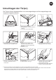 DE Umschlagen der Tür(en) Die Tür(en) können folgendermaßen von rechts angeschlagen auf links angeschlagen und umgekehrt umgebaut werden: 1. Schrank auf den Boden legen. 2. Oberes Scharnier abbauen. 3. Kunststoffstopfen in die Scharnierlöcher versetzen. 4. Tür abheben und zur Seite stellen. 5. Fußleiste nach außen und oben ziehen. 6. Gegenmutter mit dem beigefügten Gabelschlüssel lösen und Zapfen rücken. 7. Unteres Scharnier abbauen.