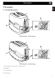 Description 2.2 Control panel 1. Defrost function button 5. Bagel function button This function is useful when using frozen bread. During toasting the defrost button will light up to indicate that the cycle is activated. This feature will toast one side of the bagel or any other kind of bread, without toasting the other side. During toasting the Bagel button will light up to indicate that the function has been activated. 2.