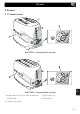 Käyttö 3.2 Toiminta 5. Paina vipukytkin alas kunnes se pysähtyy ja käynnistä paahtojakso. 1. Tarpeen vaatiessa, lyhennä johtoa kiertämällä sen alustan alle. 6. Tarpeen vaatiessa valitse yksi 2. Työnnä leivänpaahtimen pistoke pistorasiaan. 3. Laita viipaleet lokeroon. Koska leivän muoto ei ole yleensä neliskanttinen, viipaleen kääntäminen voi olla tarpeen sen asettamiseksi paremmin ja paahdatuspinnan optimoimiseksi. 4.