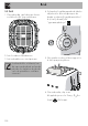 Bruk 3.4 Bruk av valgfritt tilbehør Oppvarming Denne funksjonen gjør det mulig å varme opp kalde toast eller brødskiver eller fortsette en ristesyklus hvis resultatet ikke er tilfredsstillende. For å aktivere funksjonen må man legge brødet inn i risteåpningen, velge Oppvarmingsfunksjonen på kommandoknotten for forgyldning og skyve overdelen nedover til den stopper. Den midterste varsellampen på kommandoknotten for forgyldning vil tennes.