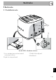 Bruk 3 Bruk Forslag og råd til bruker Fare for elektrisk støt • Sett kontakten inn i et godkjent og jordet strømuttak. • Ikke tukle med jordingen. • Ikke bruk adapter. • Ikke bruk skøyteledning. • Manglende overholdelse av disse forholdsreglene kan forårsake dødsfall, brann eller elektrisk støt. 3.1 Før første gangs bruk 1. Fjern alle klistremerkene og etikettene og rengjør den ytre delen av brødristeren ved å bruke en fuktig klut. 2. Bruk brødristeren for første gang uten å legge i brødskiver. 3.
