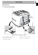 Suggerimenti e consigli per l’utente • Per risultati ottimali, è preferibile utilizzare fette sottili di prosciutto, tacchino, ecc. e formaggio grattugiato fine. • Per risultati ottimali, si consiglia di lasciare l’affettato fuori dal frigorifero a temperatura ambiente per qualche istante prima del suo utilizzo. • Non farcire eccessivamente il toast. • Utilizzando il tostapane con un basso settaggio di doratura, il formaggio e/o gli affettati potrebbero risultare tiepidi.