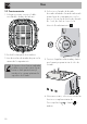 Limpieza y mantenimiento 4.5 Limpieza de las bandejas recogemigas La tostadora está equipada con dos bandejas recogemigas, uno para cada par de compartimentos. Para limpiar la bandeja recogemigas proceda como sigue: 1. Presione la bandeja recogemigas para desbloquearla y luego tire para extraerla y vaciarla. Vacíe la bandeja recogemigas después de cada uso. 2. Vuelva a colocar la bandeja recogemigas en la tostadora. Presione hasta que haga tope en su posición.