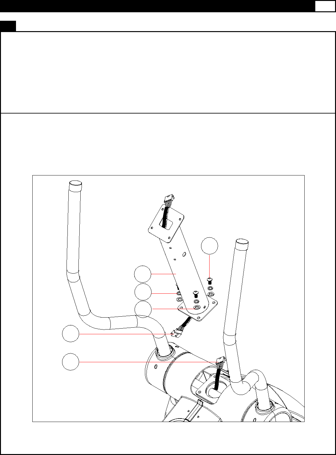 (C) Secure the console support tube to the main frame with 4x M8*20 (9), M8*2.0T spring washers (15) and