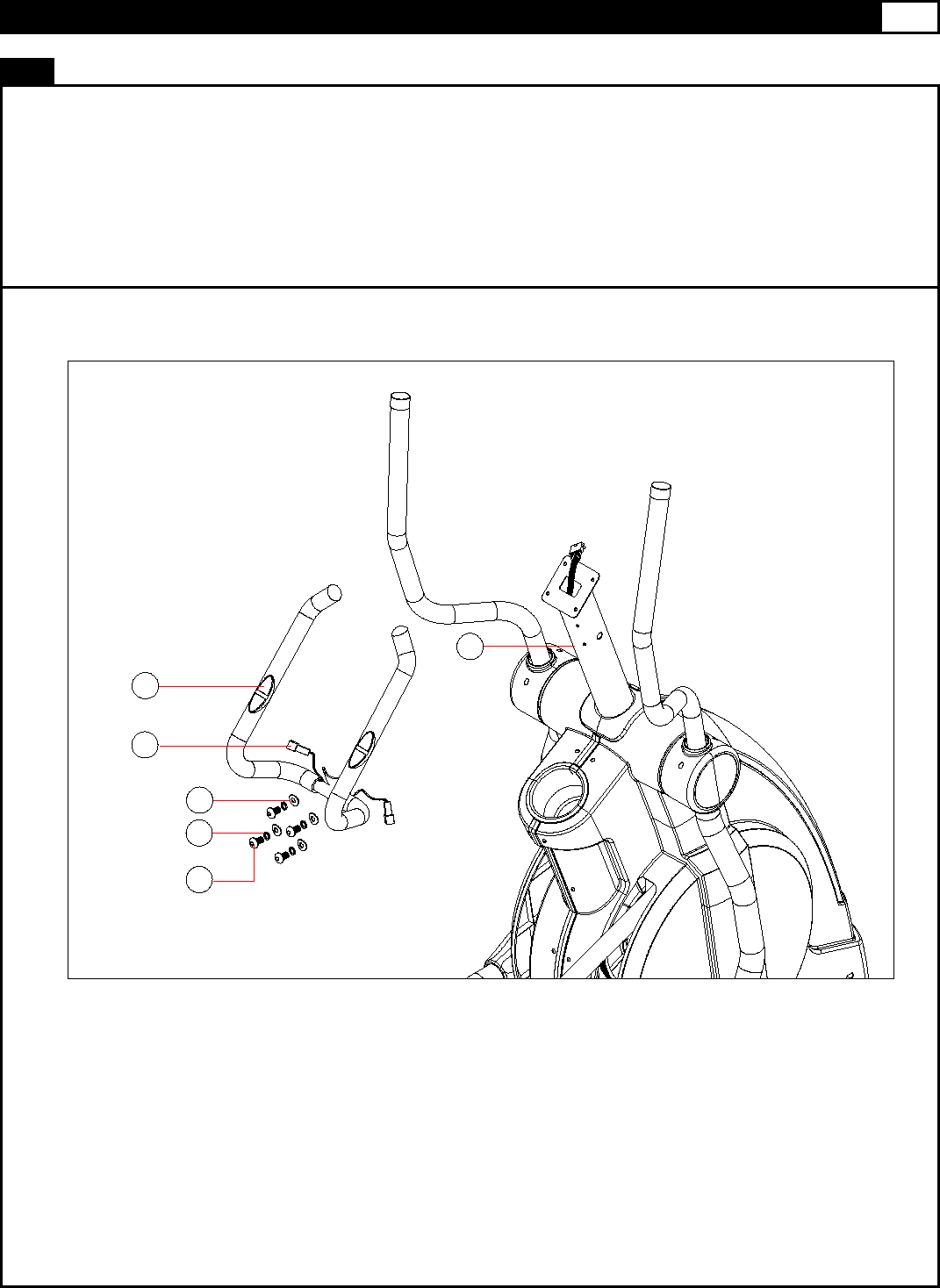 (C) Secure the handle bar to the computer post with 4 x M8*20 bolts (9), 4 x M8*2.0T spring washers (15) and 4 x