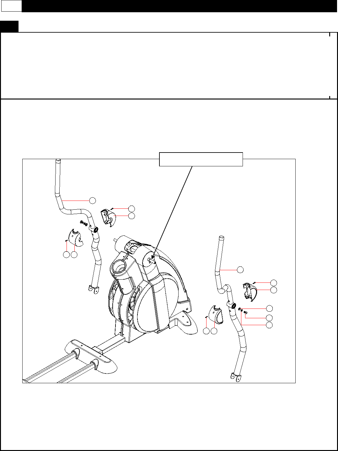 (A) Slide the right handlebar on to the action handlebar axle. Secure the action handlebar to the axle with 1 x