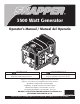 3500 Watt Generator Operator’s Manual / Manual del Operario WARNING ADVERTENCIA Before using this product, read this manual and follow all Safety Rules and Operating Instructions. Antes de utilizar el producto, lea este manual y siga todas las Reglas de Seguridad e Instrucciones de Uso. Snapper™ is a licensed trademark of Briggs & Stratton Power Products. Snapper™ se usa abajo licencia a Briggs & Stratton Power Products.