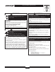 Snapper 3500W Portable Generator TROUBLESHOOTING Problem Cause Correction 1. One of the circuit breakers is open. 1. Reset circuit breaker. 2. Fault in generator. 2. Contact Authorized service facility. 3. Poor connection or defective cord 3. set. Check and repair. 4. Connected device is bad. 4. Connect another device that is in good condition. Generator runs good at no-load but "bogs" down" when loads are connected. 1. Short circuit in a connected load. 1.