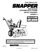 Parts Manual for TWO-STAGE INTERMEDIATE FRAME SNOW THROWER SERIES 4 IT IS THE POLICY OF SNAPPER TO IMPROVE ITS PRODUCTS WHENEVER IT IS POSSIBLE AND PRACTICAL TO DO SO. WE RESERVE THE RIGHT TO MAKE CHANGES OR ADD IMPROVEMENTS AT ANY TIME WITHOUT INCURRING ANY OBLIGATION TO MAKE SUCH CHANGES ON PRODUCTS MANUFACTURED PREVIOUSLY. COPYRIGHT © 2002 SNAPPER INC. ALL RIGHTS RESERVED (Rev. 2, 6/30/02) 24 MANUAL No.