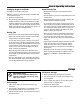 General Operating Instructions Checks Before Starting WARNING 1. Refer to the Maintenance & Adjustments sections of this manual and perform any needed service. Also, refer to the tractor Operator’s Manual and perform any required service. Perform the Safety System Interlock test found in your tractor Operator’s Manual. If tractor does not pass the test, do not operate the tractor. See your authorized dealer. Under no circumstances should you attempt to defeat the safety system. 2.
